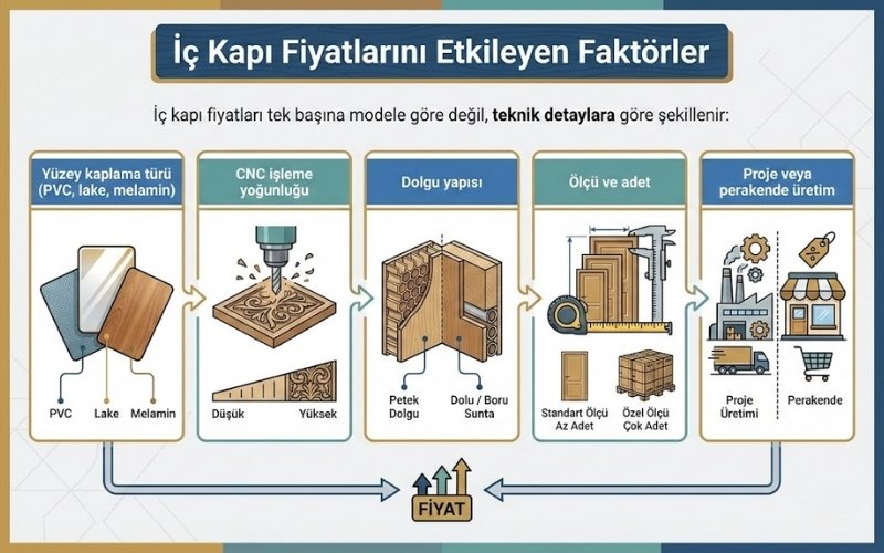 EVKAP iç kapı modelleri; PVC, melamin, lake ve lamine yüzey seçenekleriyle uzun ömür, estetik uyum ve montaj kolaylığını bir arada sunar. 65 yıllık üretim tecrübemizle, yaşam alanınıza ve kullanım amacınıza en uygun iç kapıyı birlikte belirliyoruz.
