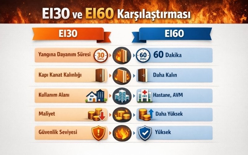 EI30 ve EI60 Karşılaştırma Tablosu