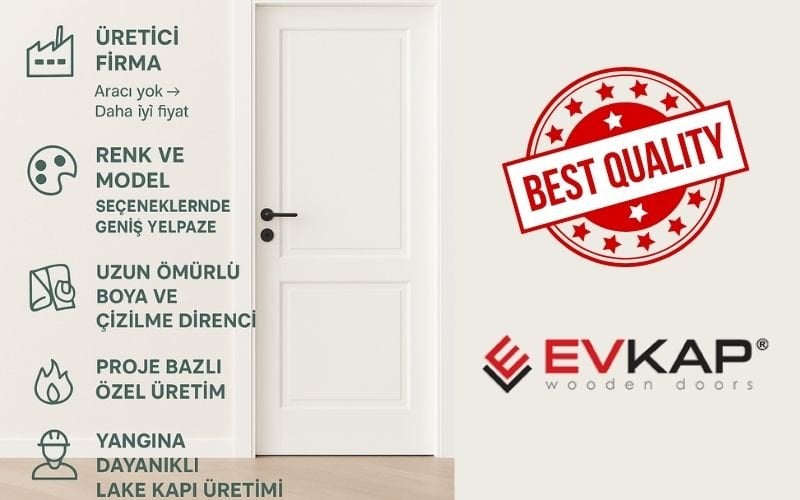 EVKAP köklü tarihi ile ahşap kapı üretiminde Türkiye’nin lider firmasıdır. Lake kapı üretiminde de firmamız hem tasarım hem de kalite standartları ile öne çıkmaktadır. Bu bağlamda müşterilerimizin neden lake kapı satın alırken bizi tercih etmeleri gerektiğini şu şekilde sıralayabiliriz;
