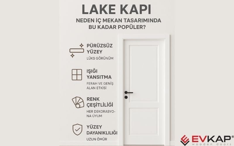 Lake kapılar iç mekan dekorasyonuna lüks, şıklık ve estetik duruşu ile zarafet katan bir iç kapı modelidir. Google’da en çok aratılan sorgular da bu teoriyi doğrular niteliktedir. ‘’Lake kapı modelleri 2025’’, ‘’mat lake kapı mı parlak mı’’ evde lake kapı nasıl görünür’’ minimalist lake kapı önerileri’’ sorguları lake kapının ne kadar dikkat çektiğinin göstergesidir.