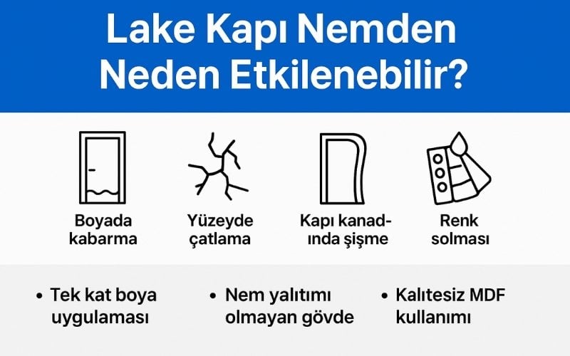 Lake kapılar düşük kaliteli malzemeler ile üretilirse nemden etkilenebilir. Eğer nemden etkilenir ise;
